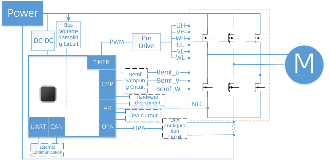 內(nèi)置3路比較器快速直接獲取反電勢(shì)信號(hào)